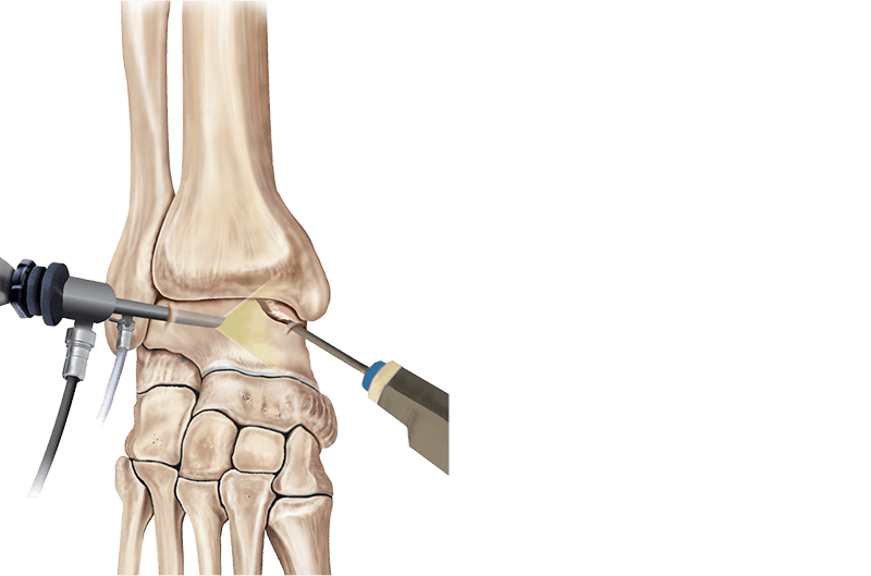 Operația este desfășurată sub anestezie totală sau rahianestezie cu o noapte de spitalizare. Operația în sine implică efectuarea a două mici incizii deasupra articulației gleznei și inserarea unei sonde cu cameră pentru a privi în interiorul articulației și a efectua procedurile chirurgicală artroscopică necesară.